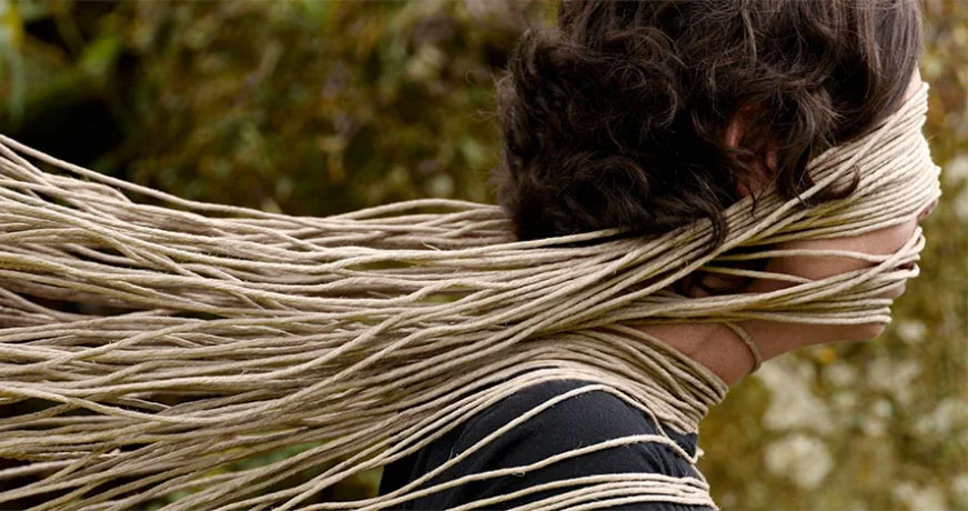 A performance é uma forma de encarnar gestos para dar visibilidade a experiências arquetípicas compartilhadas. A situação de estar amarrada a uma árvore com cordas que além de restringirem o corpo, também amordaçam, e, principalmente cegam, representa as limitações mentais constituídas pelos condicionamentos sociais.