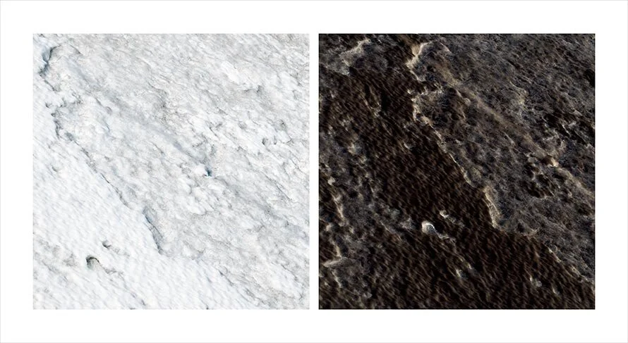 O deserto sendo um espaço de altos contrastes, me parece ser uma imagem propícia para discutir a nossa tendência em projetar padrões mentais, que organizam a leitura visual em informação cognitiva. Para isso, escolhi usar polaroides que fotografei no deserto de Nevada, sobre detalhes ampliados destas imagens somados a campos de cor abstratos. Com isso, cria-se a tendência quase inevitável de enxergar este campo de cor como parte da paisagem.