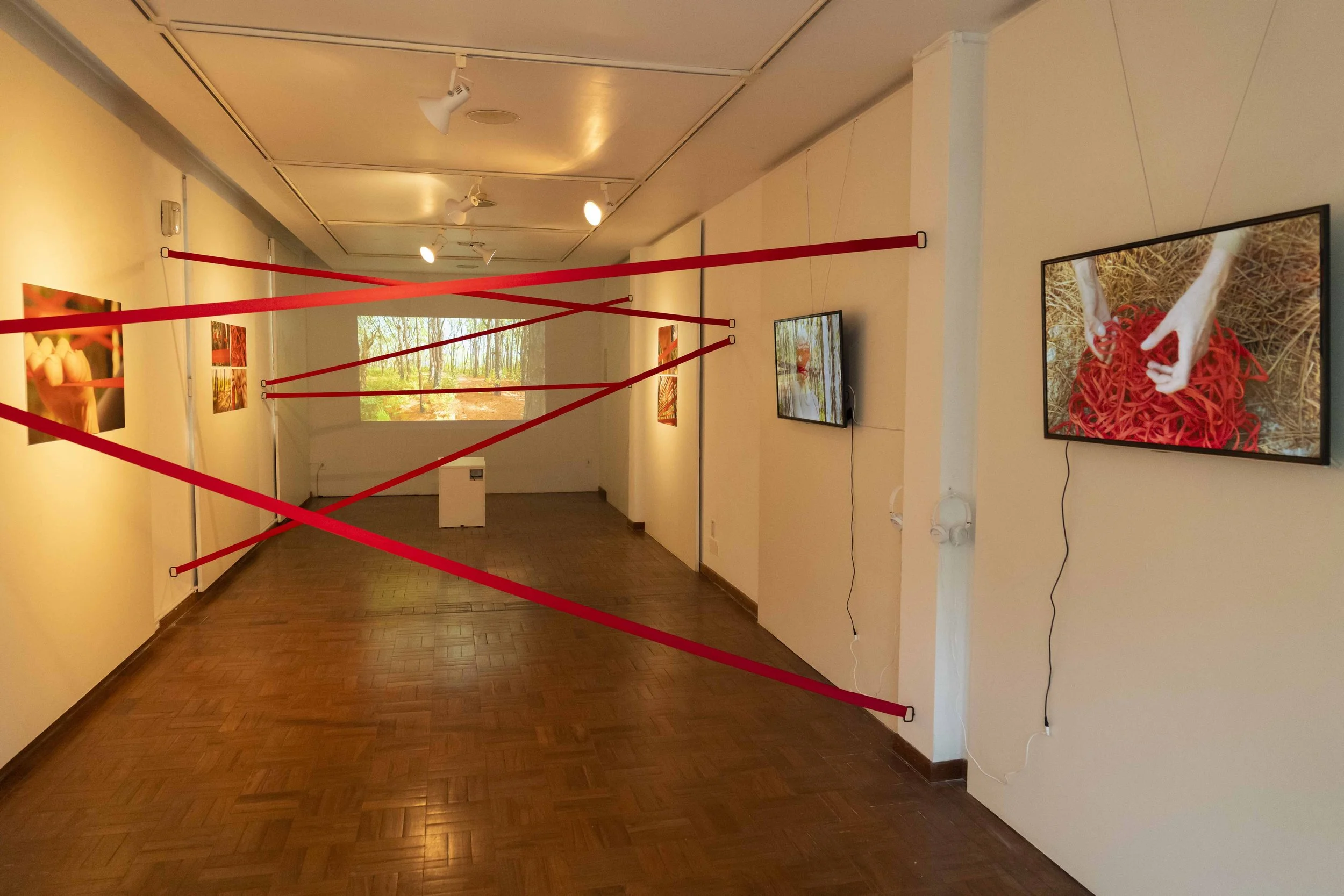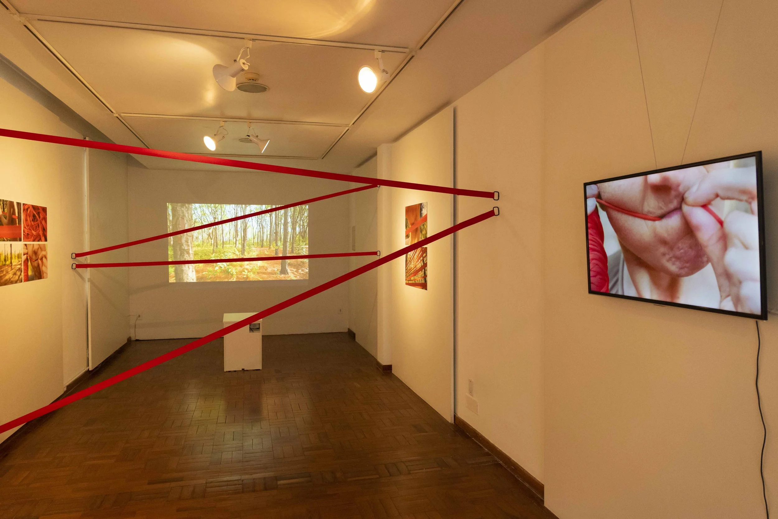 Um fio vermelho representa o desenrolar da vida. Maleável, emaranha, amordaça às vezes.